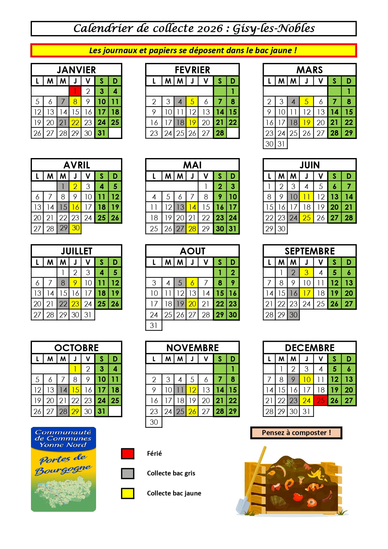du moment Cliquez sur une image pour l'agrandir Planning des temps collectifs pédagogiques de janvier à marsCalendrier 2026 pour la collecte des déchets. |