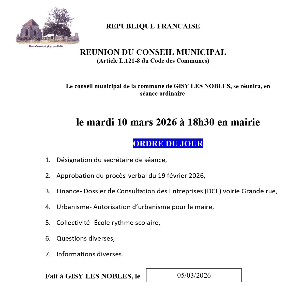 Prochain conseil municipal |