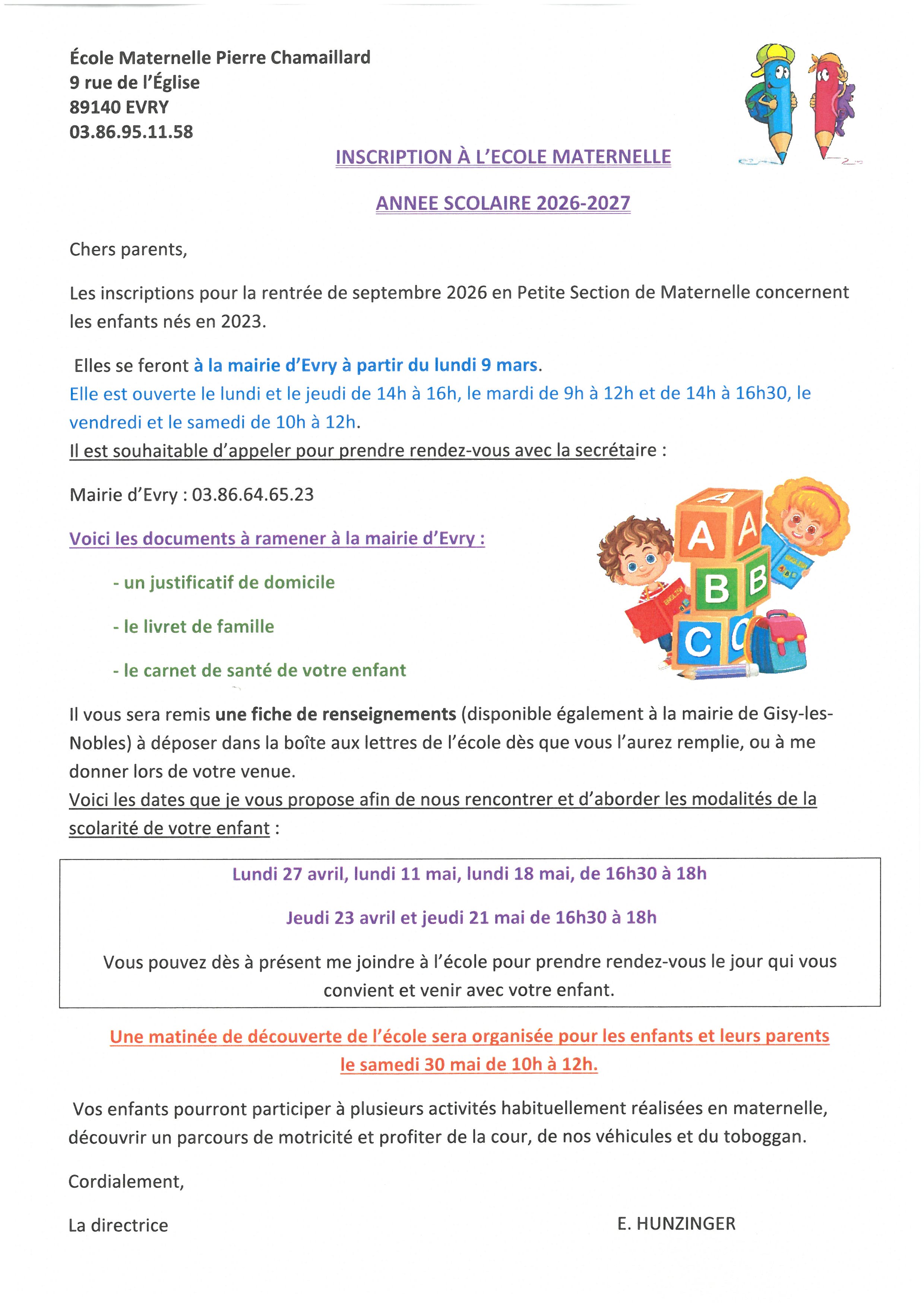 Incrire votre enfant à l'école maternelle |