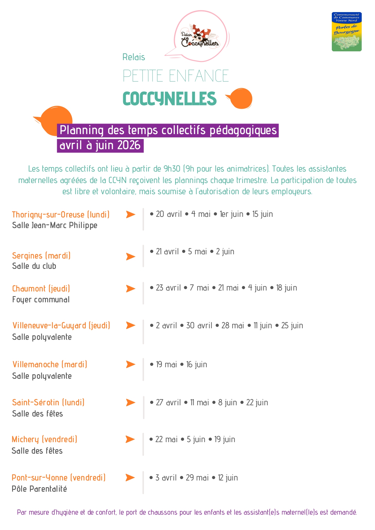 du moment Cliquez sur une image pour l'agrandir CR des Conseils municipauxVous pouvez accéder aux CR des CM des 10/03/26 et 20/03/26 et aux différentes délibérations en cliquant ici.Pôle Parentalité, planning des activités en avril.Pour incrire votre enfant à l'école maternelle, l'année scolaire 2026_27Yoga du rire à Villemanoche Yoga du Rire à Sergines Bulles de MANGA