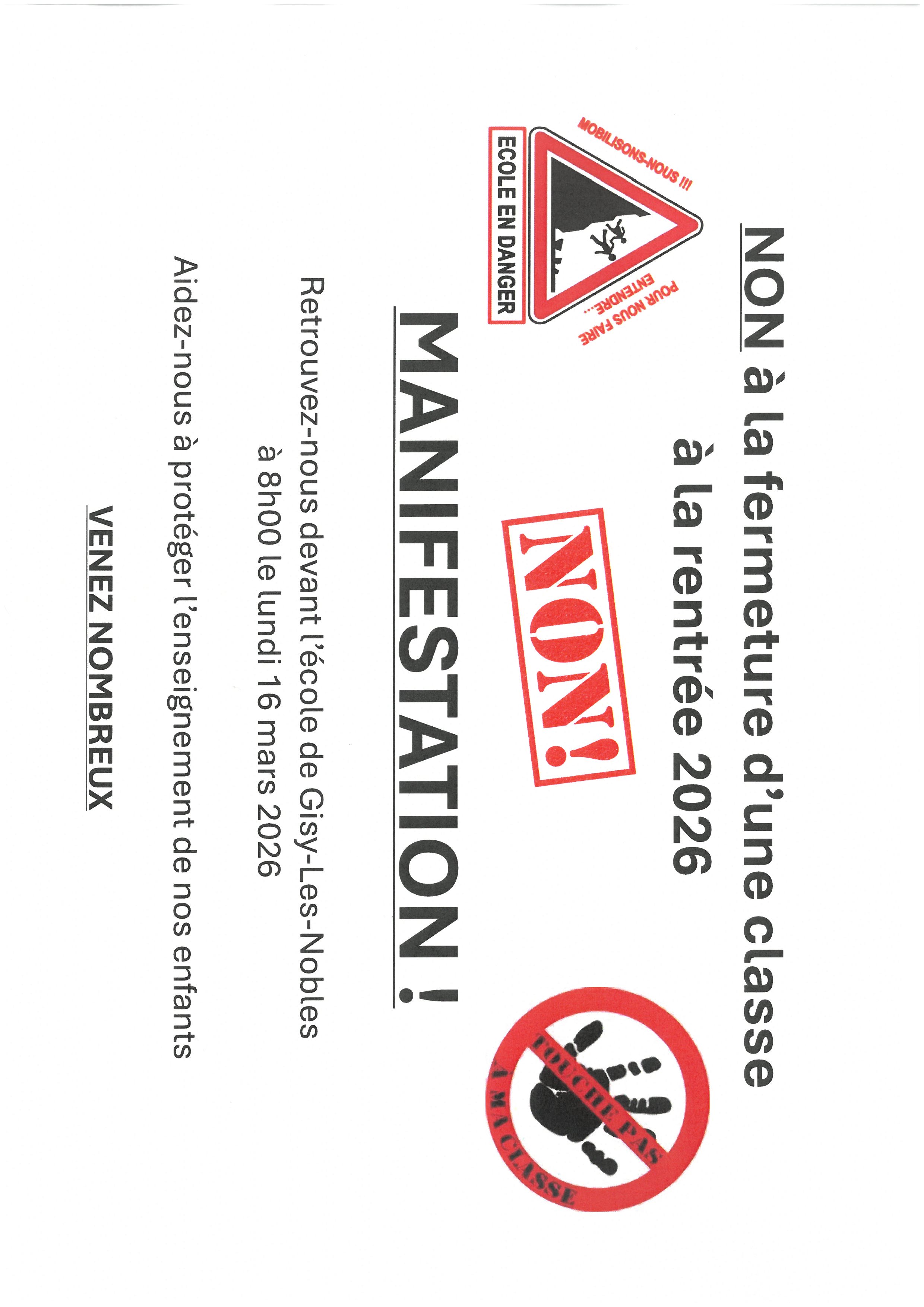 MANIFESTATION contre la fermeture d'une classe à GISY |